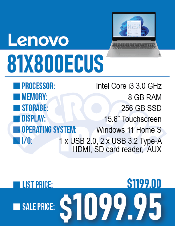 Choose from a selections of Notebook Computers to All-In-One Desktops to Separate Desktops to suit your everyday needs. Our computers come with a in-store warranty of 1-Year Parts/ 90-Days Labor. We exclusively service what we sell.